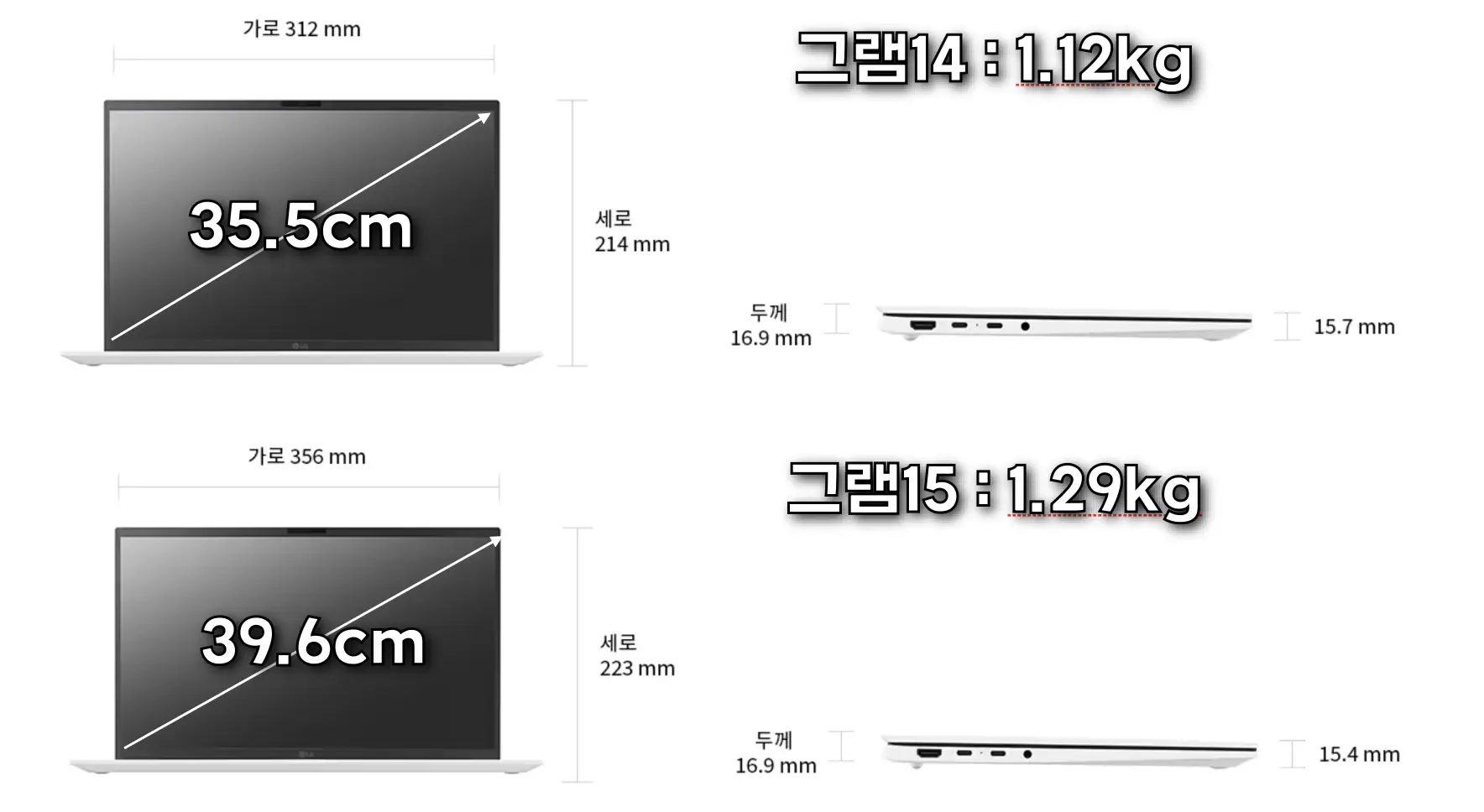 LG그램 14인치~ 15인치 라인 제품 비교
